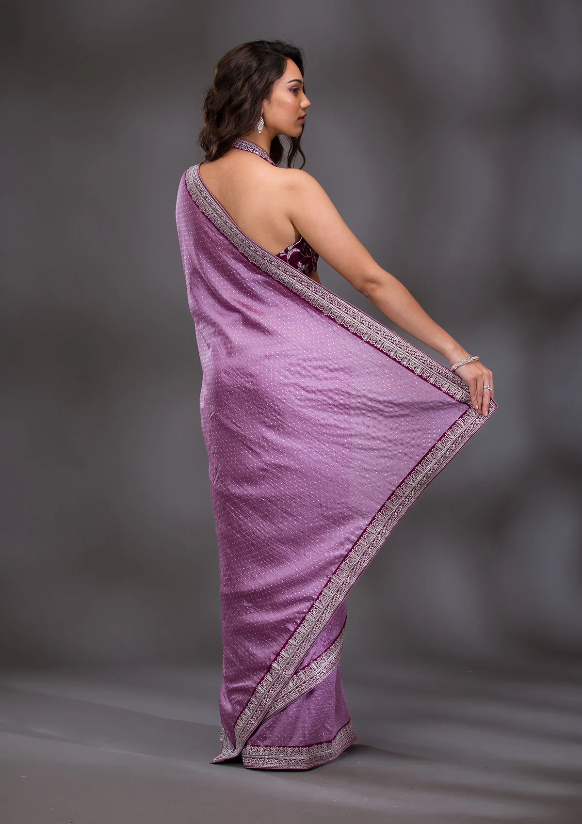 Lavender Threadwork Raw Silk Saree