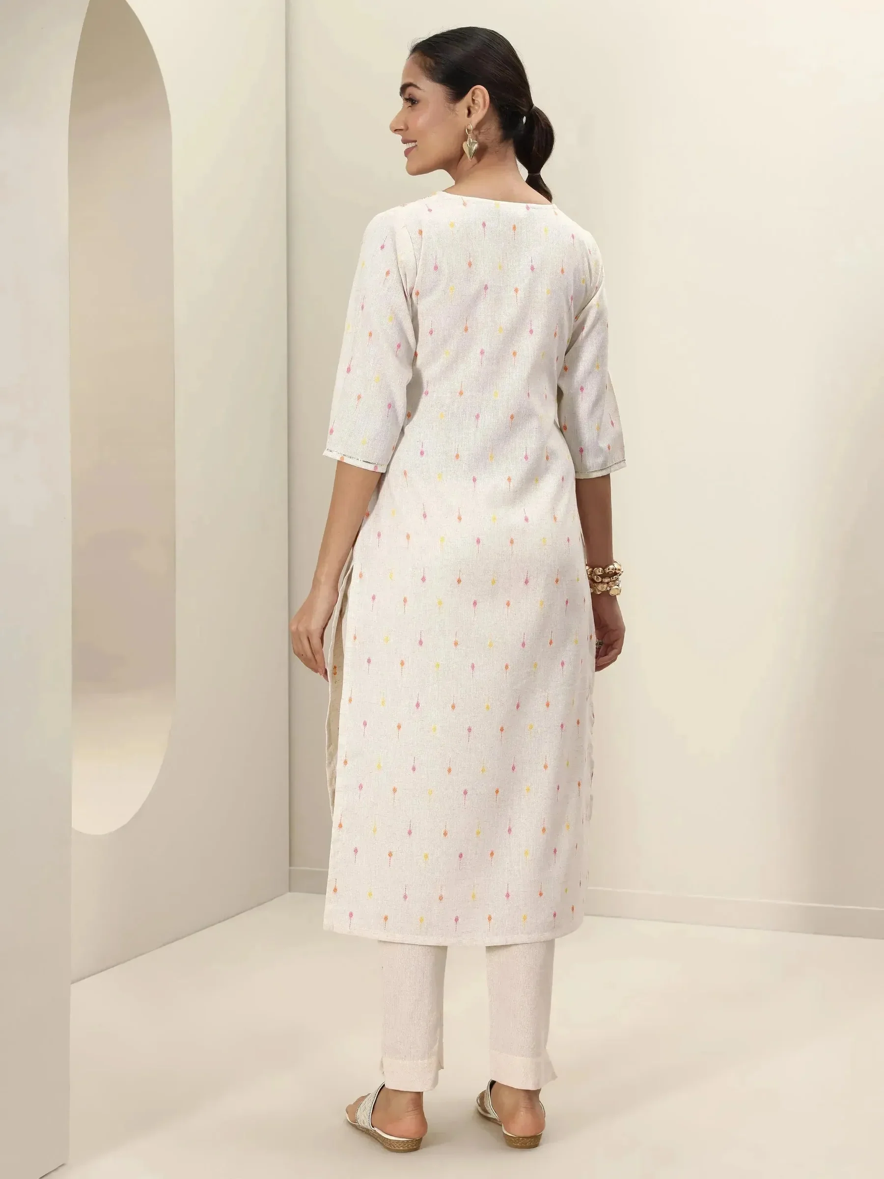 Off White Printed Cotton Straight Kurta